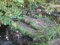 Certains cours d'eau accueillent des formations tufeuses encore appelées "sources pétrifiantes". Certaines mousses, en puisant le CO2 pour réaliser la photosynthèse, font précipiter le calcaire dissous dans l'eau. Ce calcaire se dépose alors autour des "racines" des mousses au gré des turbulences du ruisseau, formant ainsi des travertins.